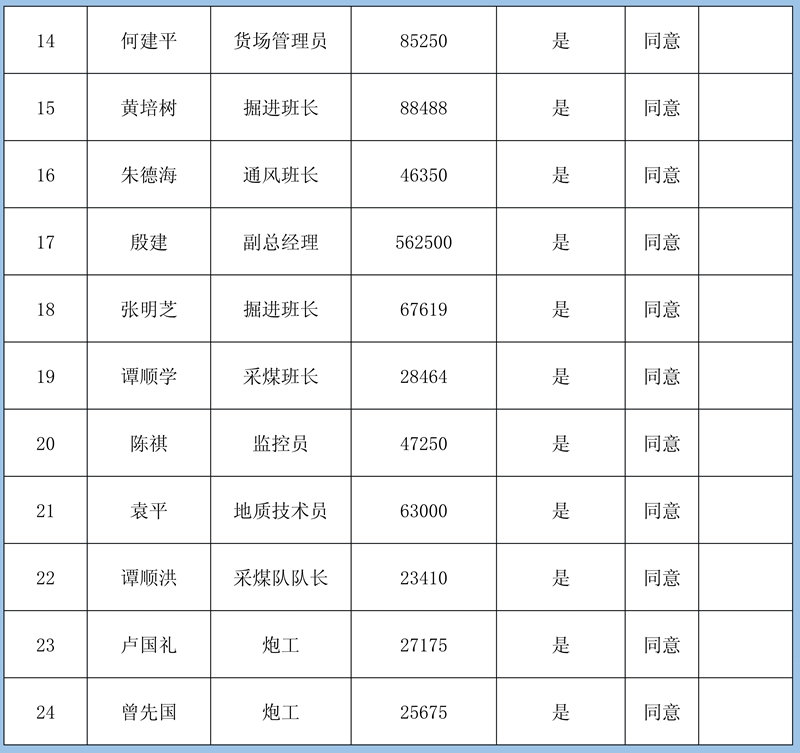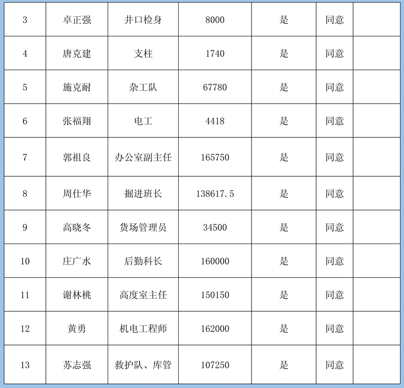 4、復(fù)核意見:建議予以確認(rèn)申報(bào)8條金額413830元;需調(diào)查核實(shí)再行確認(rèn)3條牟全書、牟全松和白啟波三人的申報(bào),當(dāng)事人未提供切實(shí)欠薪依據(jù),礦方亦不認(rèn)可;不予確認(rèn)1條劉永泉申報(bào)的欠薪經(jīng)核實(shí)為煤礦轉(zhuǎn)讓金。