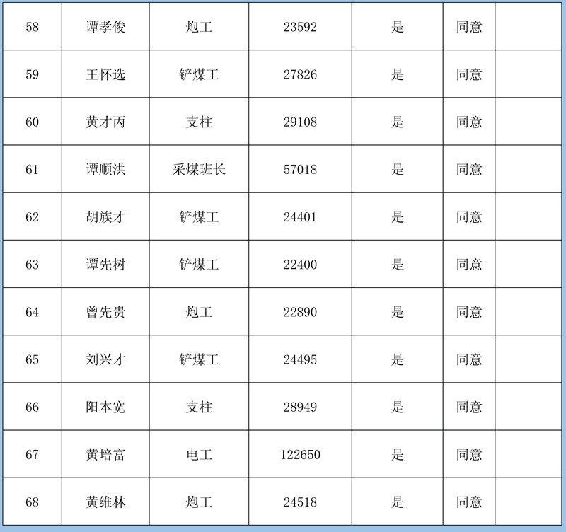 根據(jù)《鎮(zhèn)雄縣2020年直接關(guān)閉退出煤礦獎(jiǎng)補(bǔ)資金使用方案》(鎮(zhèn)煤整治辦〔2021〕4號(hào))精神,經(jīng)鎮(zhèn)雄縣人社局、鎮(zhèn)雄縣能源局對(duì)11對(duì)關(guān)閉退出煤礦的農(nóng)民工工資和工傷賠付進(jìn)行了清理,現(xiàn)將清理結(jié)果公示如下: