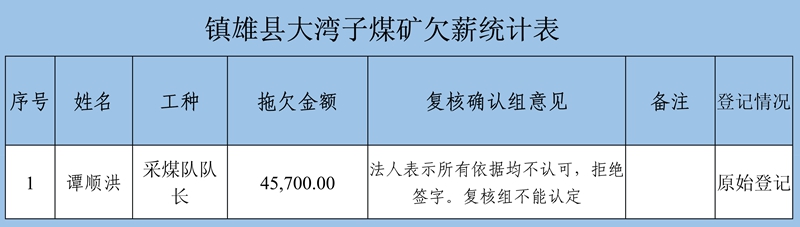 鎮(zhèn)雄縣煤礦整治工作領(lǐng)導(dǎo)小組關(guān)于對(duì)2020年關(guān)閉退出煤礦拖欠農(nóng)民工工資和工傷未賠付清理結(jié)果公示