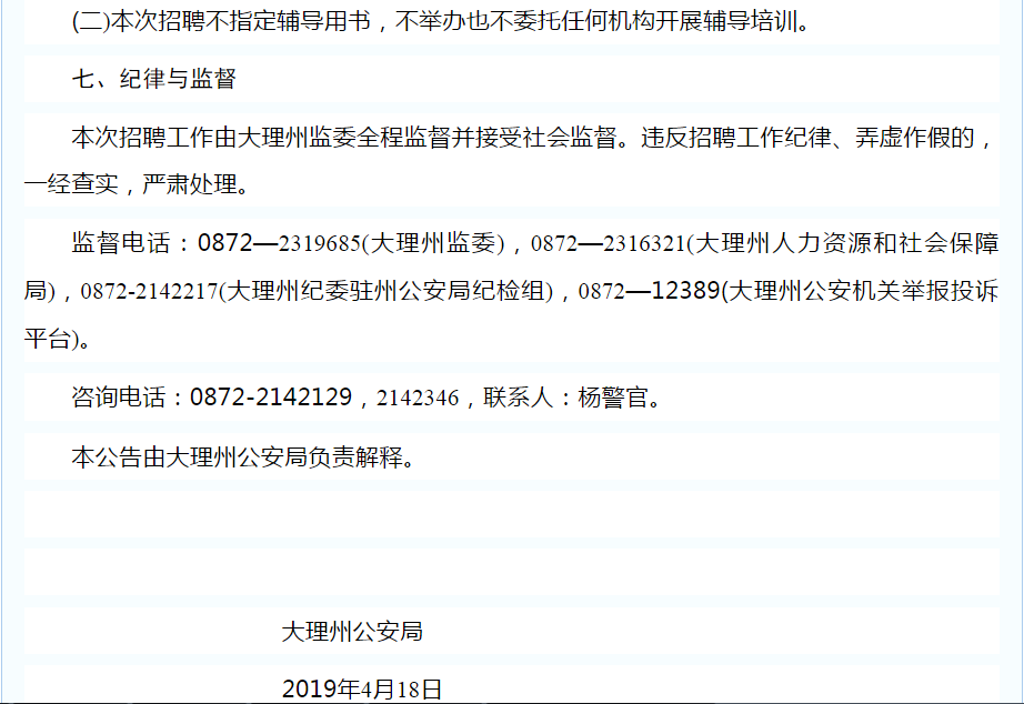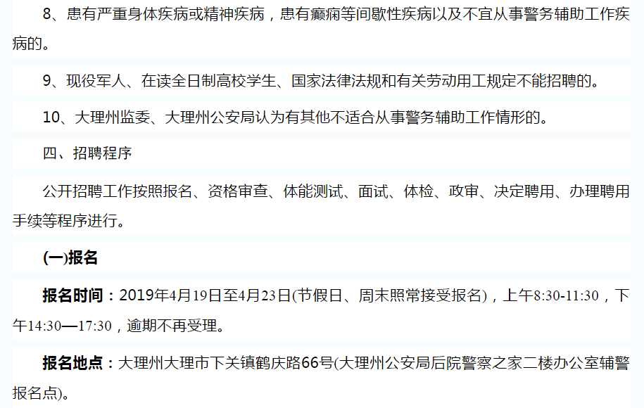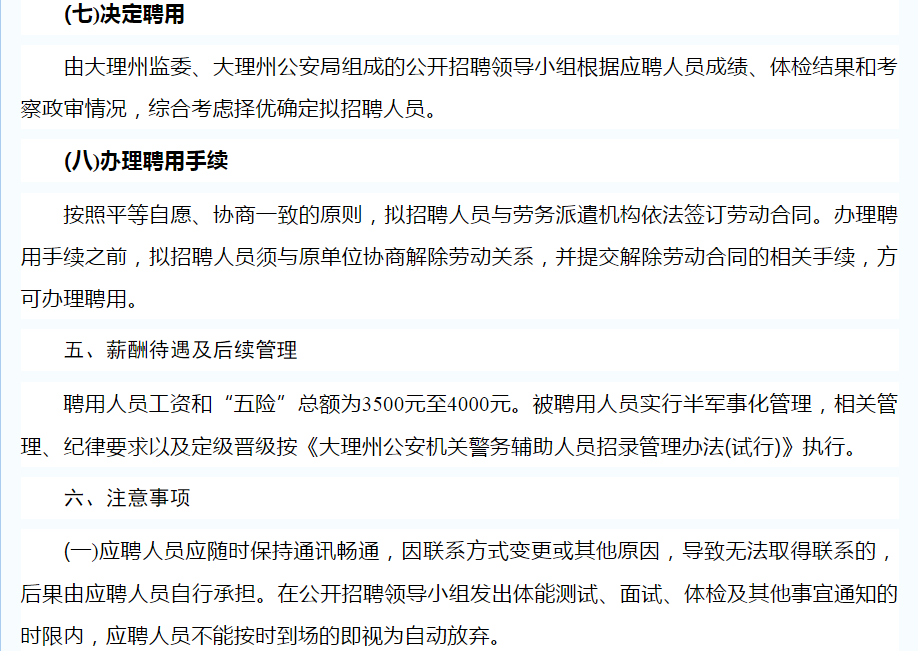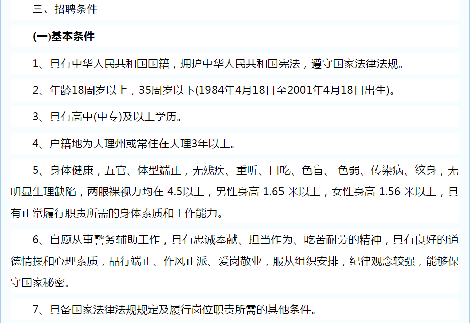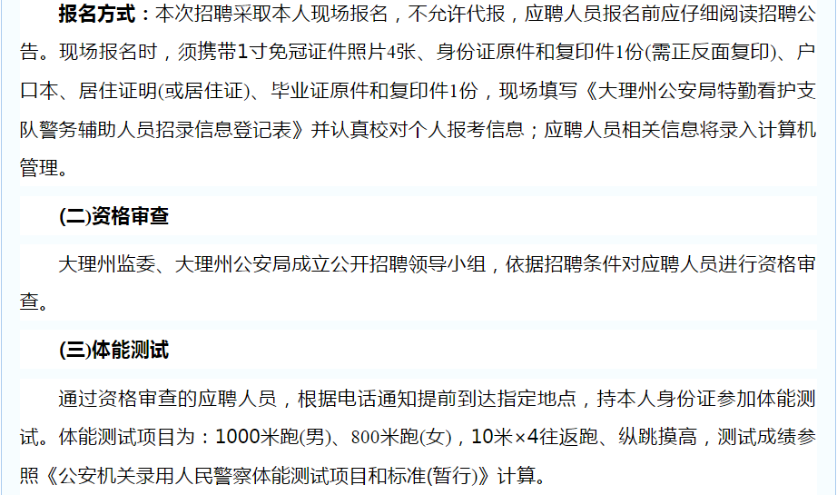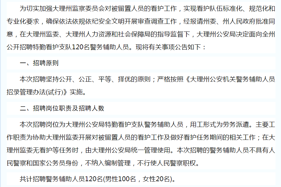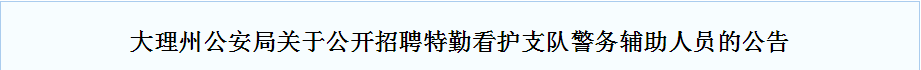 大理州公安局關(guān)于公開招聘特勤看護(hù)支隊警務(wù)輔助人員的公告