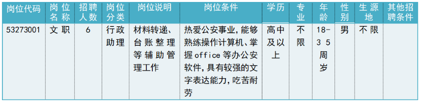 本次招錄共設(shè)1個崗位,男性6人。詳情請關(guān)注西“西盟警方”微信公眾號或西盟長安網(wǎng)(