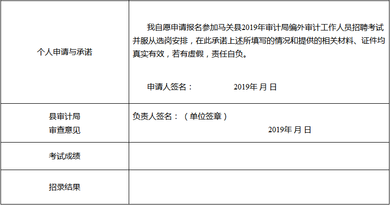 2019年馬關(guān)縣審計(jì)局公開(kāi)招聘編外審計(jì)工作人員報(bào)名表